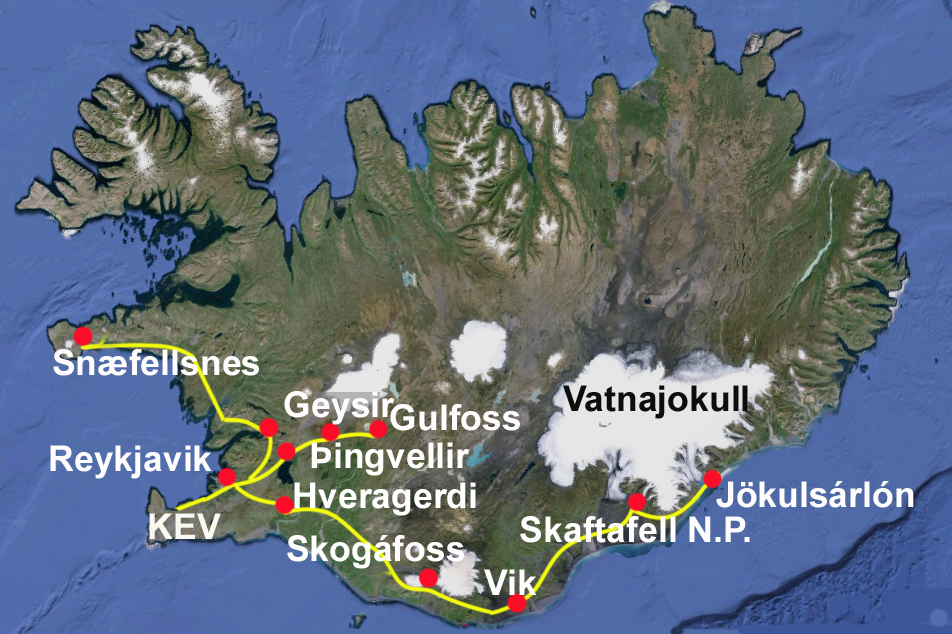 • Conoscere i luoghi più impressionanti dell’isola, come il Golden Circle: Geysir, Gullfoss, Thingvellis, fumarole, vulcani, acque termali, iceberg e cascate.