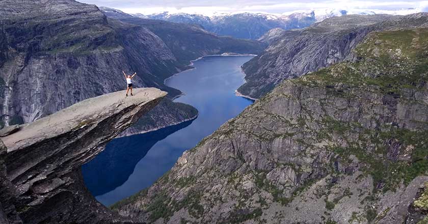 - Risalire lo spettacolare Pulpito o Preikestolen, uno dei luoghi più fotografati ed emblematici della Norvegia; fare l’incredibile escursione al Kjerag, luogo insolito sulle acque del Lysefjord; farsi fotografare sulla Trolltunga, la lingua del Troll, un altro di quei luoghi che sembrano usciti dai libri di fantasia.